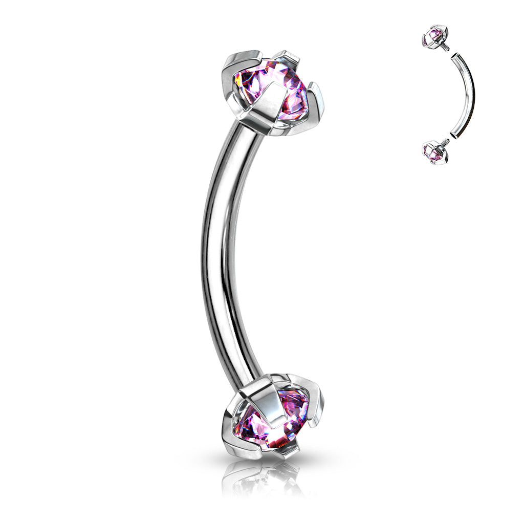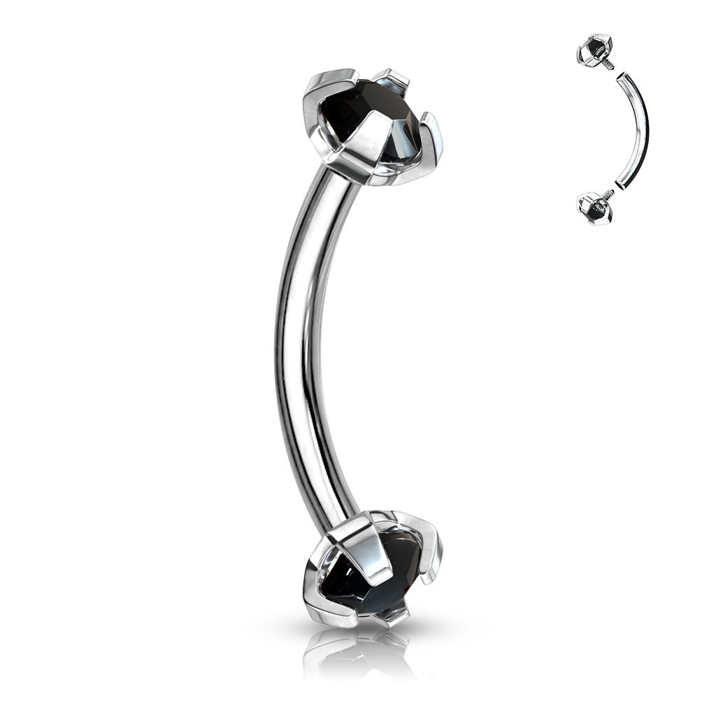 Prong Set Gem Internally Threaded 316L Surgical Steel Eyebrow Curve Ring